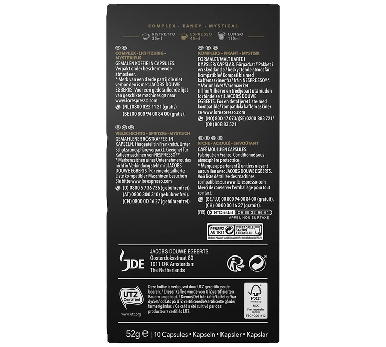 Ces capsules compatibles Nespresso® sont certifiées UTZ, un café durable qui respecte la planète et ses habitants. Ce café a été cultivé par des producteurs certifiés UTZ.