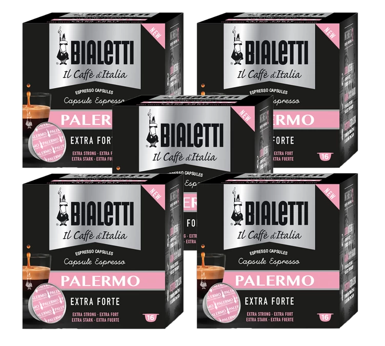 Les capsules Palermo de Bialetti vous offre un café puissant et l’amertume prononcé et la longueur en bouche persistante. Obtenez un café typique Italien, influencé également par la culture orientale. Un expresso aux notes de cacao amer et à la crema onctueuse. Capsules compatibles avec les machines Bialetti Mokespresso. Conditionnement : 5 boîtes de 16 capsules.