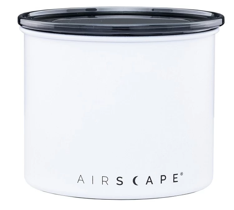Découvrez la boite de conservation Airscape en acier inoxydable peint blanc mat. Idéal pour conserver votre café ou tout autre aliment. Couvercle intérieur breveté Airscape. 100% hermétique et vide d’air pour conserver tous les arômes de votre café. Garanti sans BPA. Contenance : 0,9 L – 250g.