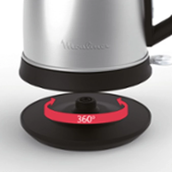 La bouilloire Subito Select Inox de Moulinex marie à merveille design, modernité et élégance. Son corps en inox mat mat d’une capacité d’1,7L vous permettra de préparer une grande quantité d’eau chaude en un seul geste. Sa résistance cachée permet une ébullition rapide, elle dispose également d’un filtre anti-calcaire et d’une base dà 360°. Garantie 2 ans.