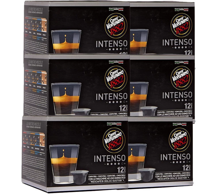 Laissez vous séduire par la puissance et les notes aromatiques développées de ce mélange Arabica / Robusta du torréfacteur italien Caffe Vergnano. En tasse, vous trouverez un corps rond et une crema épaisse. Capsules compatibles Nescafe® Dolce Gusto®. Conditionnement : 6 boîtes de 12 capsules.