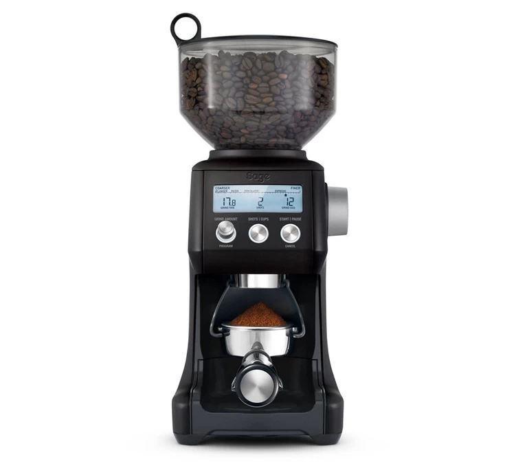 Le moulin à café Sage Smart Grinder Pro Black Truffle dispose d’un écran en façade qui résume les réglages que vous avez décidés !