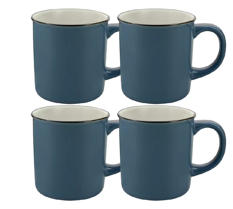 4 mugs bleus en grès AOC