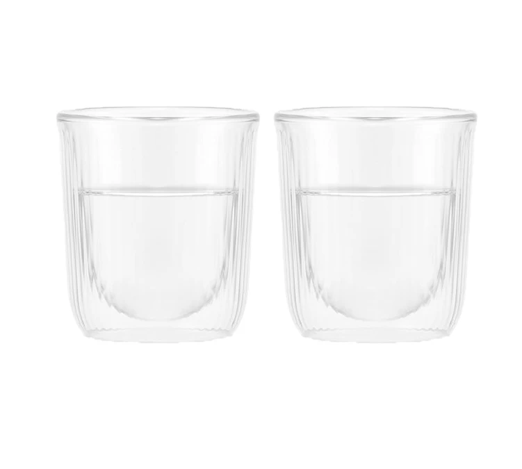 Ces verres à expresso font partie de la collection Douro de Bodum, inspirée du style de la vallée du Douro au Portugal. Le style de ces verres allie modernité et tradition asiatique. Ils sont de vrais bijoux sur votre table. Leur double paroi permet de garder votre boisson chaude ou froide à la température désirée plus longtemps. Entre les deux parois, on retrouve un évent en silicone, qui éviter également les brûlures au contact du verre.